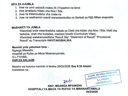This is a valuable opportunity for qualified Tanzanians, especially health professionals and social welfare experts, to join one of the country’s key referral hospitals. Applicants are advised to prepare their documents early and ensure all required certifications and licenses are valid before submission.
