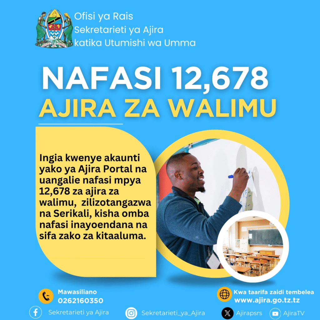 This is a golden opportunity for Tanzanians aspiring to contribute to national development through public service. Whether you are a fresh graduate teacher, an engineer, or a technical specialist, this recruitment offers a pathway to a stable and rewarding government career, For full details, visit the official PSRS website or access the complete job announcement on portal.ajira.go.tz